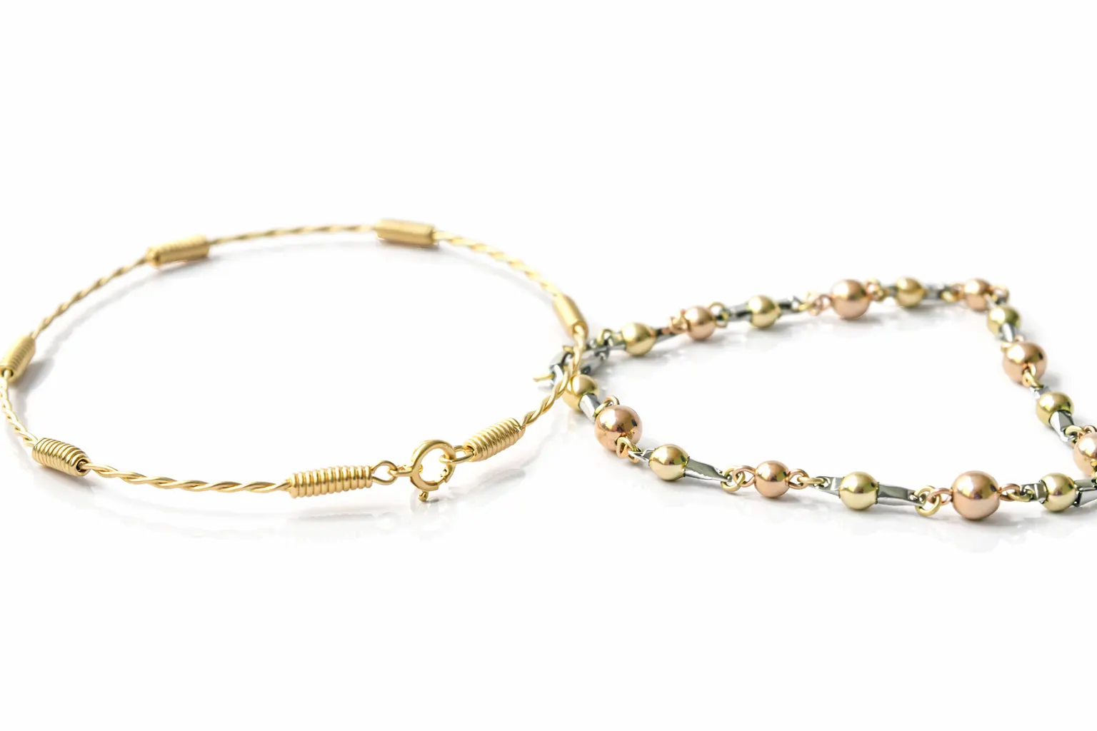 Y anexa la exclusiva 3 oros pin plata. Pulsera fina y distinguida elaborada con esferas de oro laminado en tonos amarillo y rosado con pines de plata, creando el clásico y atemporal estilo de “tres oros”. Las esferas están enlazadas mediante pines exquisitamente pulidos que aportan brillo y elegancia. Este diseño ligero y versátil se adapta perfectamente a la muñeca, brindando una apariencia sofisticada sin perder la comodidad. Ideal para quienes buscan una joya discreta con un toque tradicional, perfecta para cualquier ocasión.
